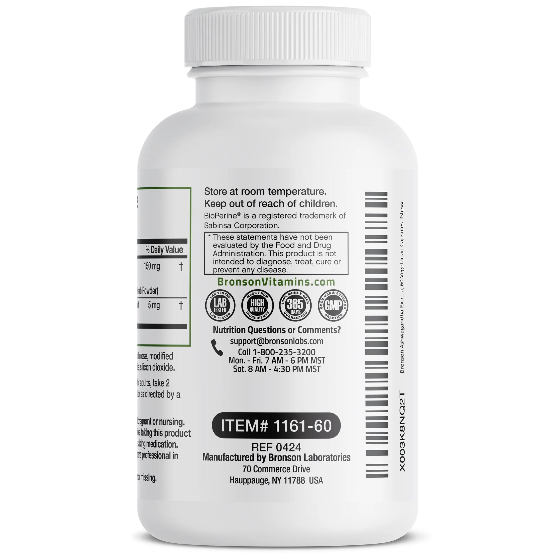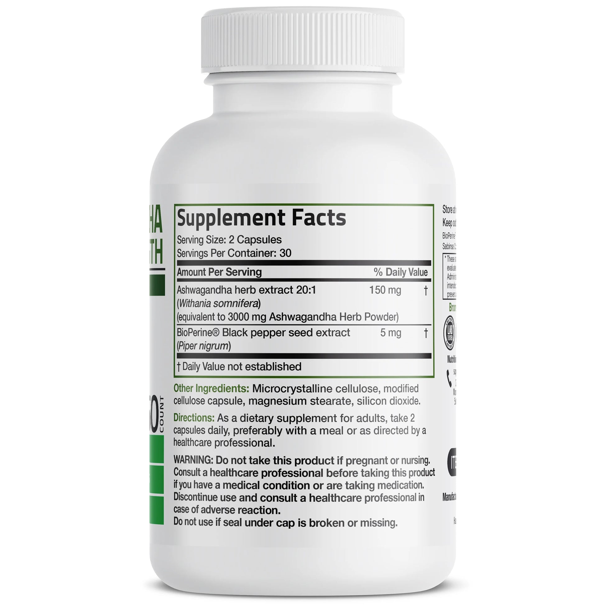 Ashwagandha is known as an Adaptogenic herb, as it helps the body cope and adapt to various stresses that occur in daily life. Bronson’s Ashwagandha provides 3000 mg per serving (2 vegetarian capsules) of high-quality Ashwagandha herb. Ashwagandha Extra Strength 3000 MG helps to support a healthy stress response, maintain healthy cortisol levels, support a positive mood, and memory.* Bronson’s Ashwagandha additionally includes BioPerine, which has been clinically shown to enhance nutrient absorption.* Laboratory tested and free of GMOs, Gluten and Soy, Ashwagandha Extra Strength 3000 MG is carefully manufactured by trained professionals in our state-of-the-art facility that is located in Hauppauge, New York. Ashwagandha Extra Strength 3000 MG is Vegan/Vegetarian friendly and contains no ingredients derived from animals WHO TO USE: As a dietary supplement for adults, take 2 capsules daily, preferably with a meal or as directed by a healthcare professional. Ingredients: Ashwagandha herb powder ((Withania somnifera), BioPerine Black pepper extract (piper nigrum). Other Ingredients: Microcrystalline cellulose, modified cellulose capsule, magnesium stearate, silicon dioxide. Extra Strength Formula: Bronson’s Ashwagandha provides 3000 mg per serving (2 vegetarian capsules) of high-quality Ashwagandha herb. Ashwagandha is known as an Adaptogenic herb, as it helps the body cope and adapt to various stresses that occur in daily life.* Herbal Stress Support: Ashwagandha Extra Strength 3000 MG helps to support a healthy stress response, maintain healthy cortisol levels, support a positive mood, and memory.* Bronson’s Ashwagandha additionally includes BioPerine, which has been clinically shown to enhance nutrient absorption.* Superior Quality Vegan/Vegetarian Formula: Laboratory tested Non-GMO, Gluten-Free and Soy-Free. Bronson products are in-house tested and carefully manufactured by trained professionals in our state-of-the-art facility that is located in Hauppauge, New York. Ashwagandha Extra Strength 3000 MG is Vegan/Vegetarian friendly and contains no ingredients derived from animals. cGMP Premium Standards: Every product manufactured by Bronson is put through a rigorous process to ensure purity, potency and integrity. Through our very own cGMP Certified New York Facility that complies with the most current regulations, we promise to deliver top-quality supplements that are consistently verified for quality and safety. Trusted Since 1960: The pioneers of Bronson Vitamins were a group of pharmacists who witnessed the benefits of vitamins and mineral supplementation firsthand with their patients. Bronson Vitamins have been consistently mentioned by top medical professionals since our inception in 1960.