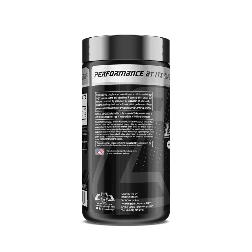 CORE CHAMPS L-ARGININE: Unlocking the Power of Nitric Oxide for Optimal Performance and Wellness! Harness the power of L-Arginine and unlock the benefits of enhanced nitric oxide production. Experience improved blood flow, enhanced exercise performance, and support for your cardiovascular health and immune system. Elevate your performance and well-being with our trusted L-Arginine supplement!