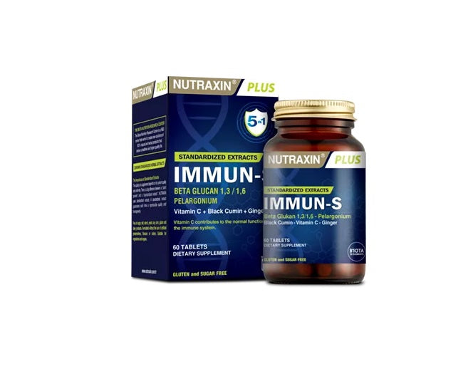 - Nutraxin Immun-S is a special formula containing 1.3 - 1.6 Beta-Glucan in its improved formula along with black cumin, African geranium and ginger plants.